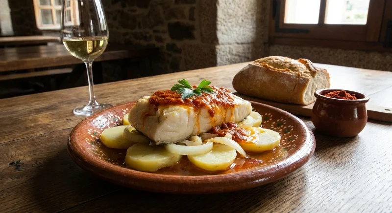 Lomo de bacalao con ajada y patatas cocidas.