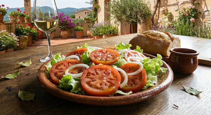 Lechuga, tomate y cebolla.